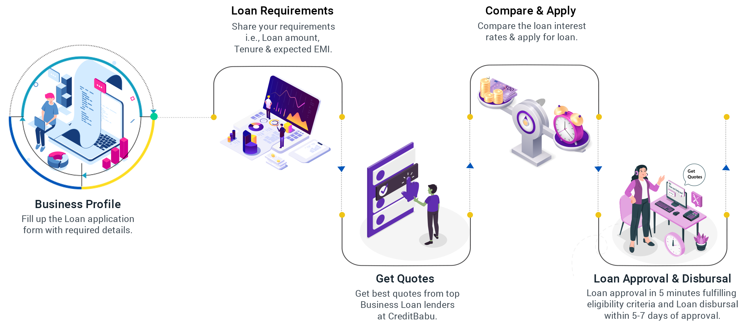 No paper-work. No long-forms. No long-ques. Simply fill up your details online, share your profile and requirements and easy cash.